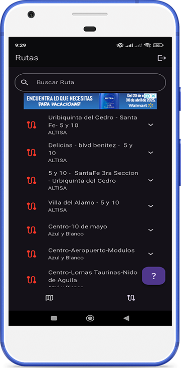 Con la app puedo encontrar una ruta y saber que transporte pasa por ahí.